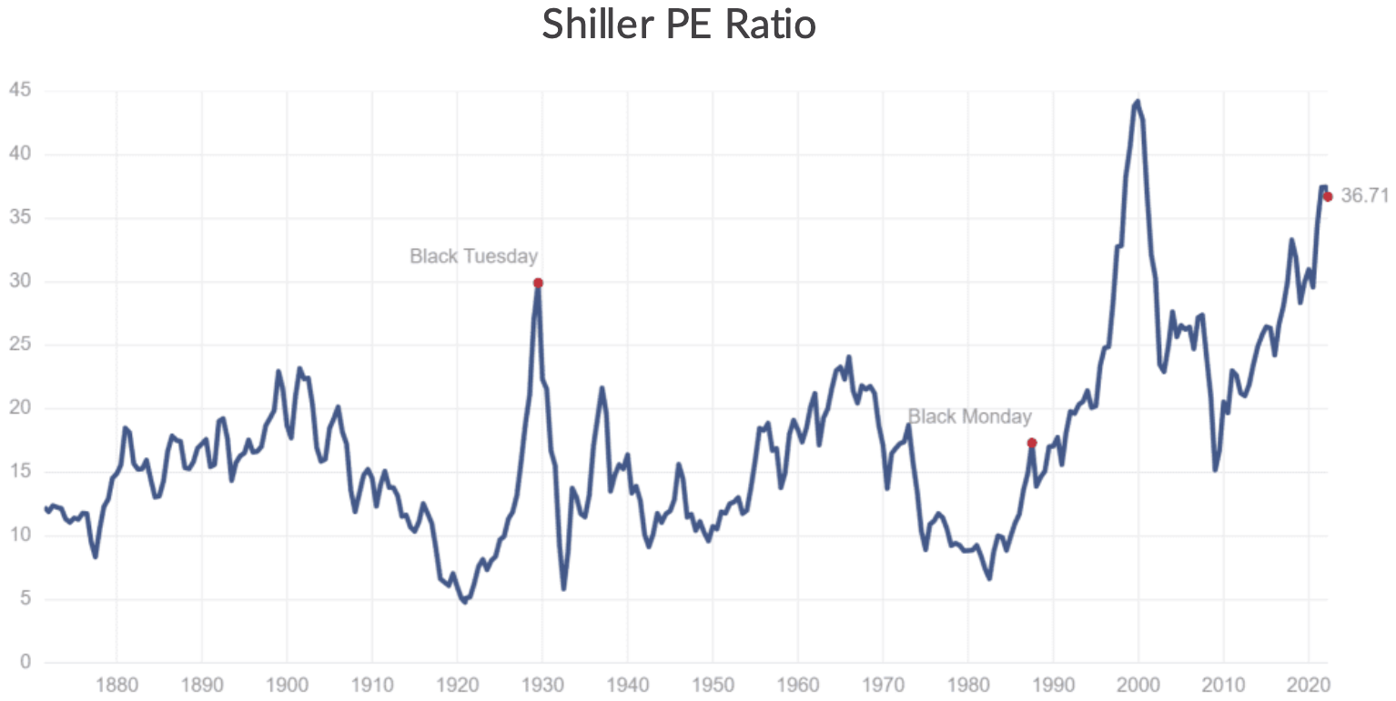 The chart below indicates the elevated valuation of U.S. equities relative to historical norms.i
